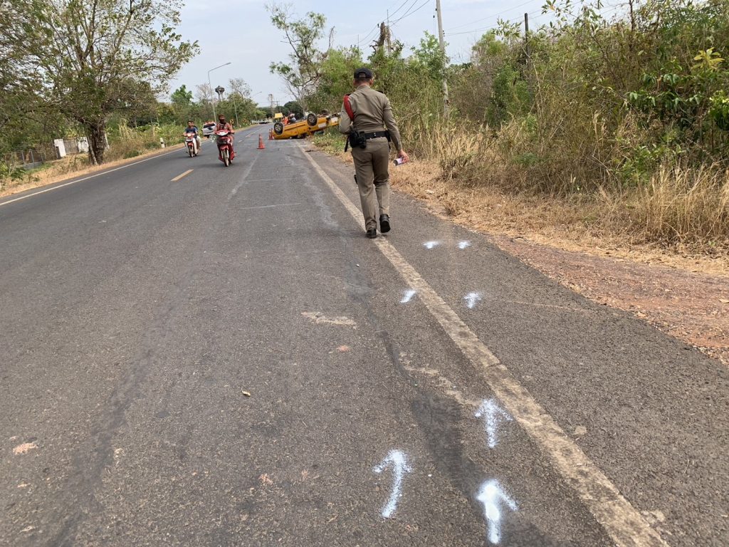 วันที่ 26 กุมภาพันธ์ 2568 ร.ต.อ.ธีระพล ไชยศรี รอง สว(สอบสวน) สภ.เอือดใหญ่ ได้ออกตรวจที่เกิดเหตุและเก็บหลักฐาน เหตุรถพลิกคล่ำ บนถนนเส้น 2134 บ้านบก ม.3 ต.เอือดใหญ่ อ.ศรีเมืองใหม่ จ.อุบลราชธานี เบิ้องต้นไม่มีผู้เสียชีวิต