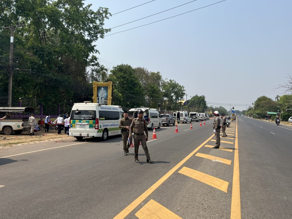 วันนี้ 25 มีนาคม 2568 เวลา 13.30น. ร.ต.อ.สมพงษ์ แสงฤทธิ์ รอง สวป.สภ.เอือดใหญ่ พร้อม ว.30 สายตรวจจราจร ร่วม ซ้อมแผนอุบัติเหตุหมู่ในช่วงเทศกาลสงกรานต์ ปี 2568 ร่วมกับ โรงพยาบาลศรีเมืองใหม่ อำเภอศรีเมืองใหม่ ฝ่ายปกครอง สาธารณสุขอำเภอฯ เทศบาลตำบลศรีเมืองใหม่ และหน่วยงานที่เกี่ยวข้องฯ บริเวณหน้าโรงเรียนศรีเมืองวิทยาคาร