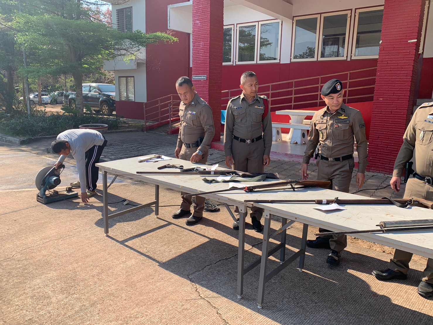 พ.ต.ท.จัตุรัส บุญบัง สว.สภ.เอือดใหญ่ ได้นำของกลางจากการกระทำผิด มาทำลาย